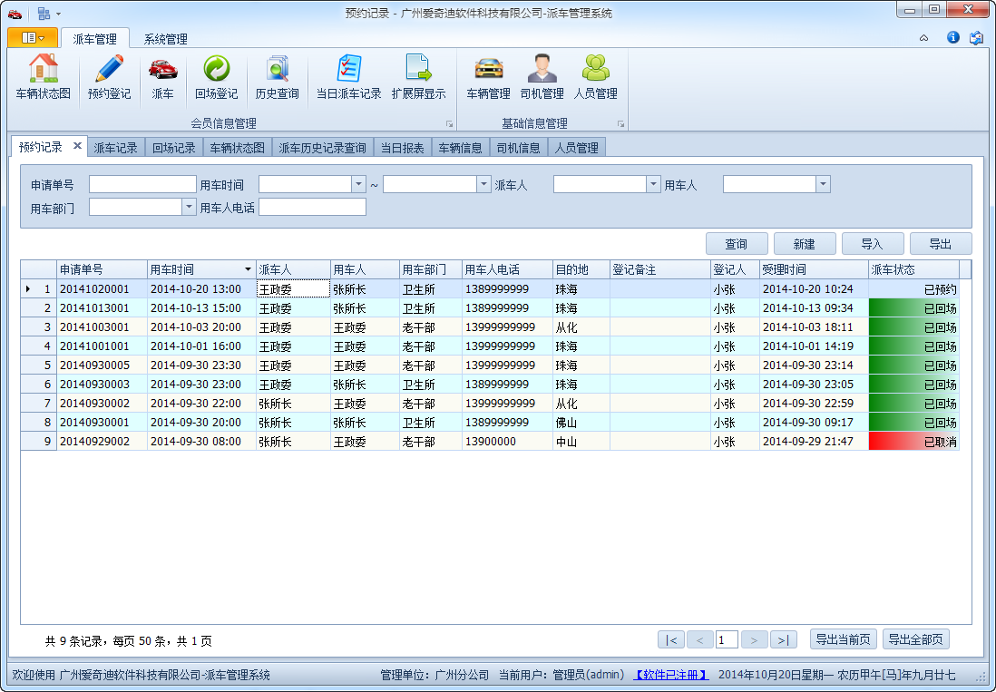 軟件最大程度的簡化車輛派車流程的管理,綜合了車輛預(yù)約、派車及打印派車單、回場登記等功能,在界面上盡可能關(guān)聯(lián)相關(guān)的基礎(chǔ)數(shù)據(jù),如車輛信息,人員信息,車輛信息,實(shí)現(xiàn)數(shù)據(jù)的快速錄入,減輕派車值班人員的工作量,另外系統(tǒng)提供了車輛歷史記錄報(bào)表功能,方便統(tǒng)計(jì)指定時(shí)間內(nèi)的車輛里程。